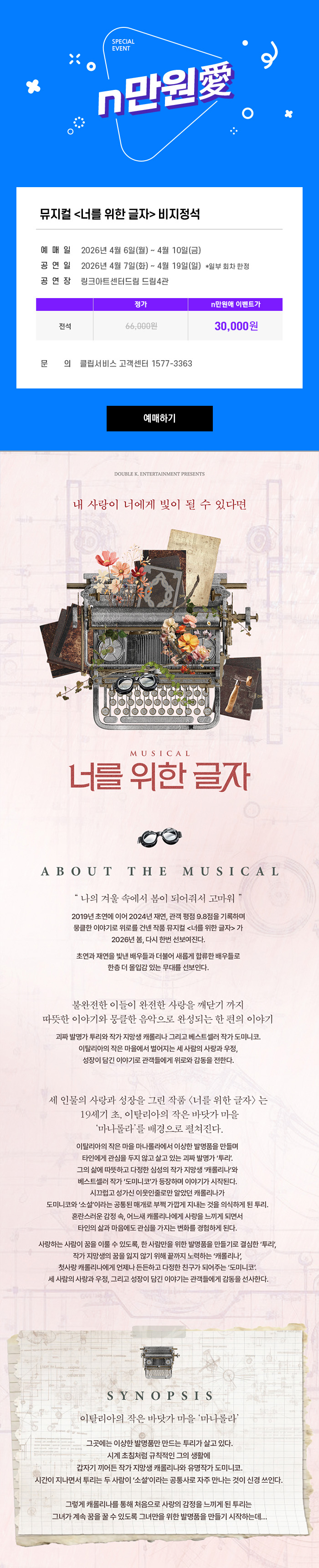뮤지컬 <너를 위한 글자> - 비지정석 n만원愛