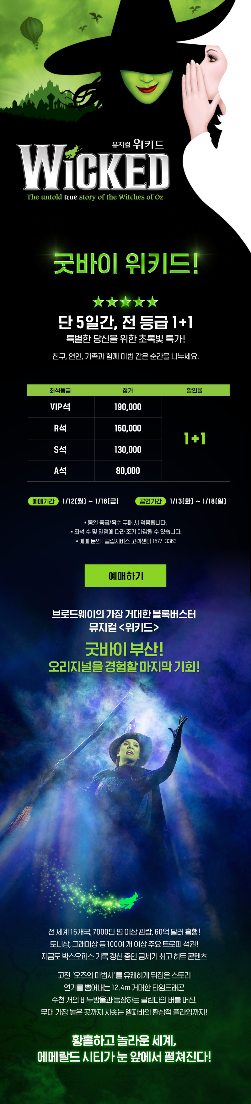 뮤지컬 <위키드> 내한 공연-부산 굿바이 타임세일