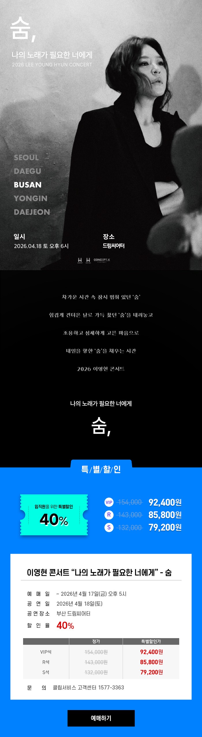 2026 이영현 콘서트 “나의 노래가 필요한 너에게” - 숨 in 부산 특별할인