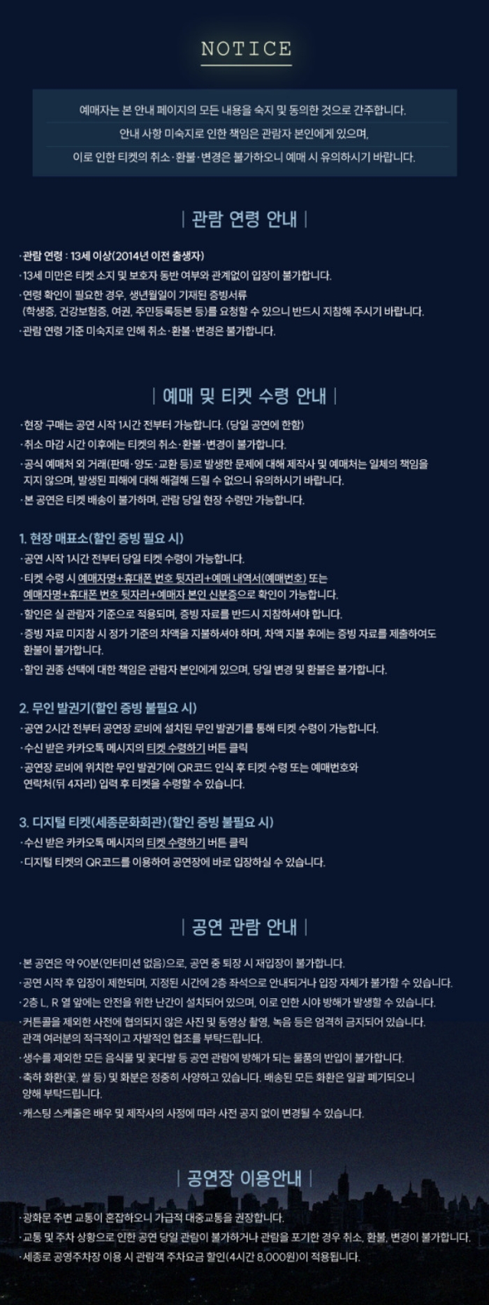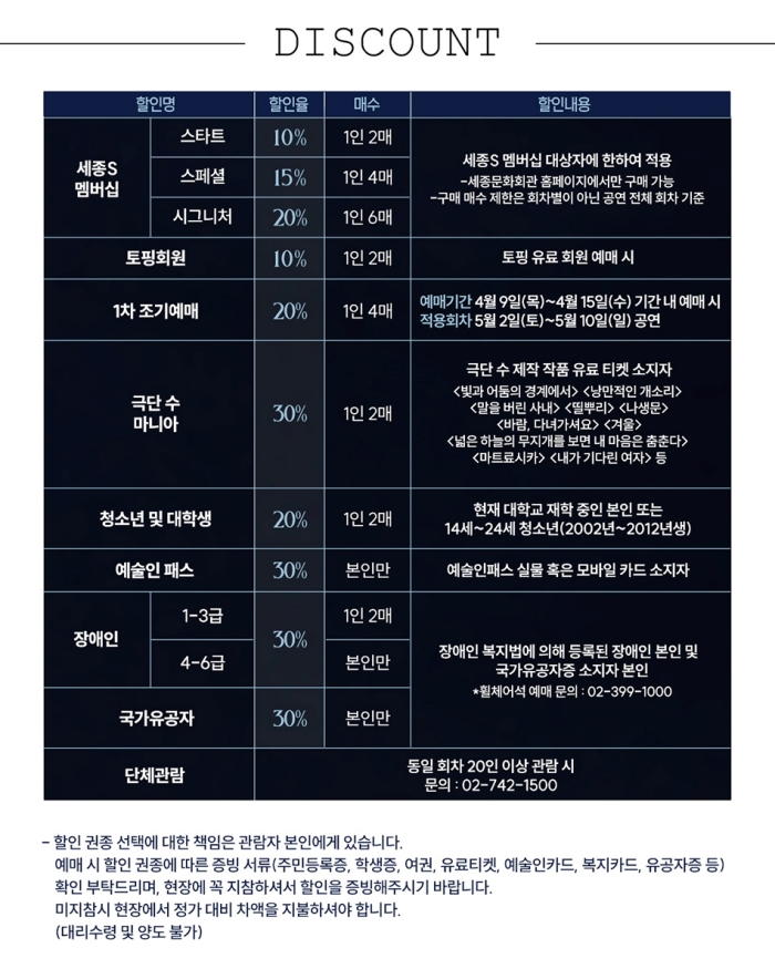 ∙ 취소마감시간 : 공연일 1일 전 오후 5시 / 공연일이 일요일, 월요일인 경우 토요일 낮 12시
